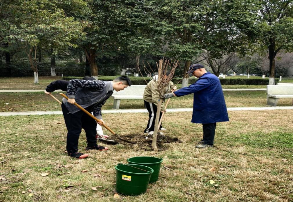活动当日,师生早早来到植树地点,大家热情高涨,干劲十足。活动现场,师生们三五成组,挖坑栽苗、培土浇水,在后勤部的指导下,两棵紫玉兰树扎根沃土。学院机关党支部成员与青年学生结对劳动,在协作中也不断深化了育人合力。