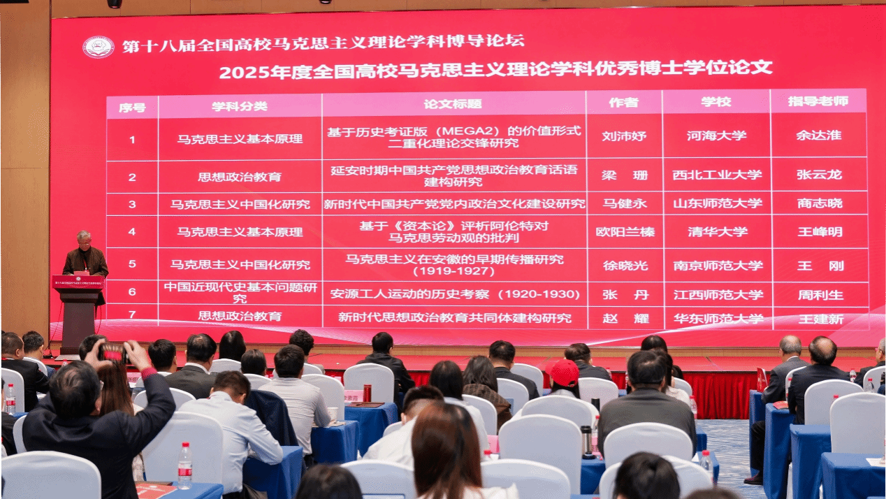 2025年11月22日,第十八届全国高校马克思主义理论学科博导论坛在海口举行,会议期间同步举行了2025年度全国高校马克思主义理论学科优秀博士学位论文颁奖仪式。我校颜射av