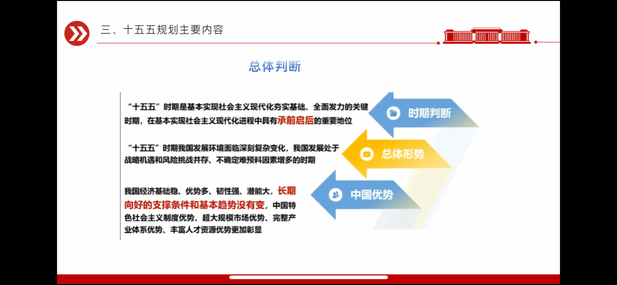 导读环节结束后,张学见教授对两位同学的导读给予高度评价。首先,张教授讲到两位同学对“十五五”规划的内容总结梳理地非常到位且有自己的思考。接着,张教授给大家提供了一个新的研究视角,不拘泥于文本的研究,把历史、现在和未来打通。最后,张教授讲到作为颜射av