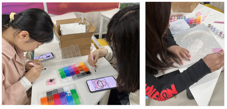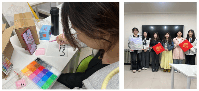 随后,趣味体验环节正式开启。数字绘画与创意拼豆两大治愈类活动同步开展,同学们自由选择、动手创作。大家静下心来调配色彩、拼接零件,在专注的艺术创作中暂时卸下焦虑与疲惫,沉浸式感受慢生活的美好,借助手工与艺术的力量放松身心、释放情绪。