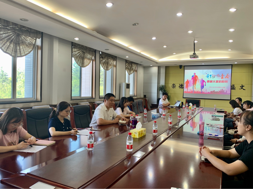 On September 7, 2020, the social practice group during the summer holiday of School of Marxism held a practice sharing meeting for 2020 freshmen, which was presided over by Counselor Li Shui. All the 2020 freshmen of School of Marxism, Liu Xin, Secretary of the Communist Youth League Committee of School of Marxism, and Ligang, Deputy Party Secretary of School of Marxism, attended the meeting together.